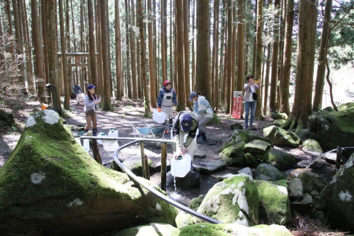 プロジェクトスタートに先駆け、ビールの醸造に使う湧水を汲みに行くとのお話を聞きつけて、水循環保全啓発担当の私ぺいたんとトミーさんこと早坂隊員もお手伝いに馳せ参じました🏃